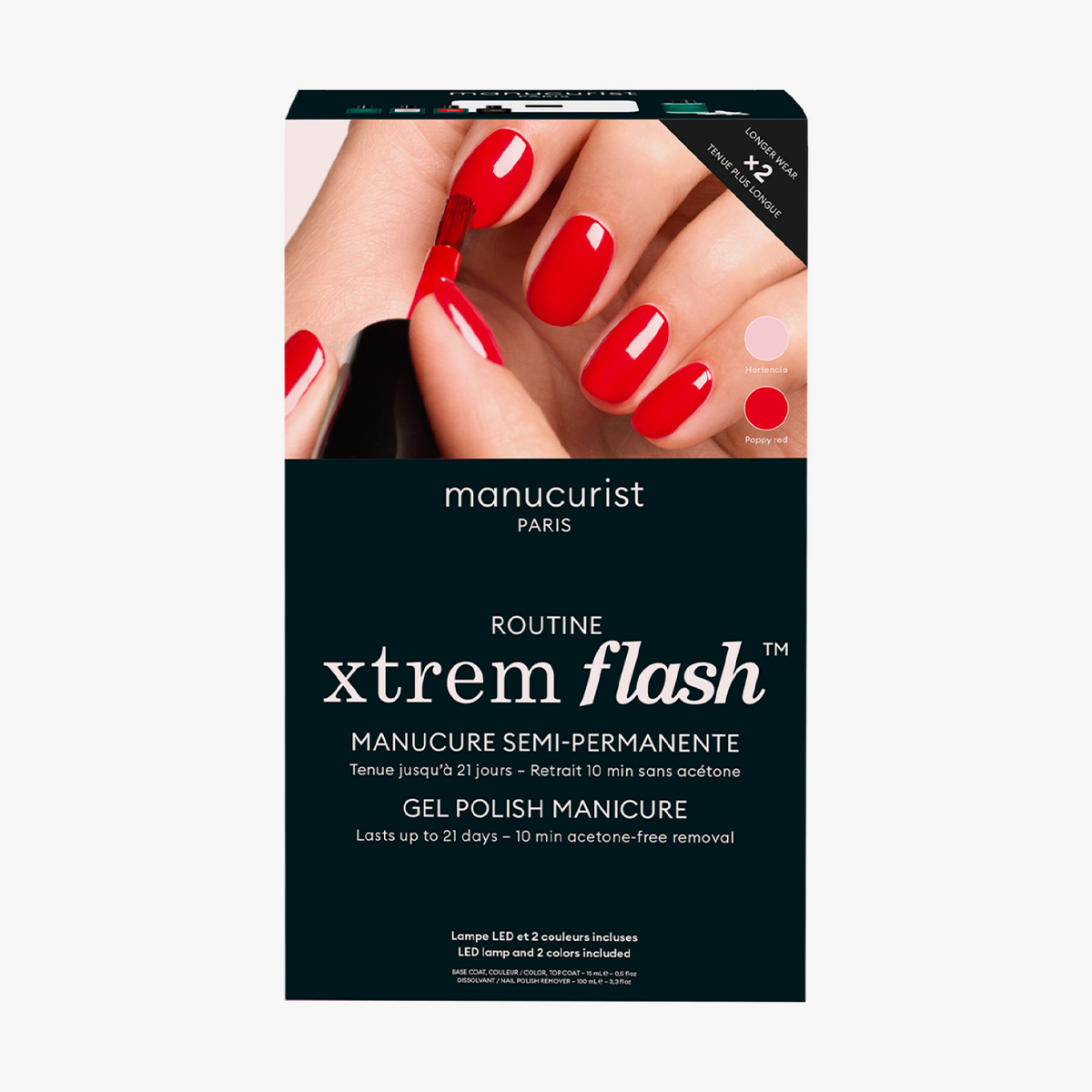 - 2 odstíny Green Flash LED laku (Poppy Red a Hortencia)